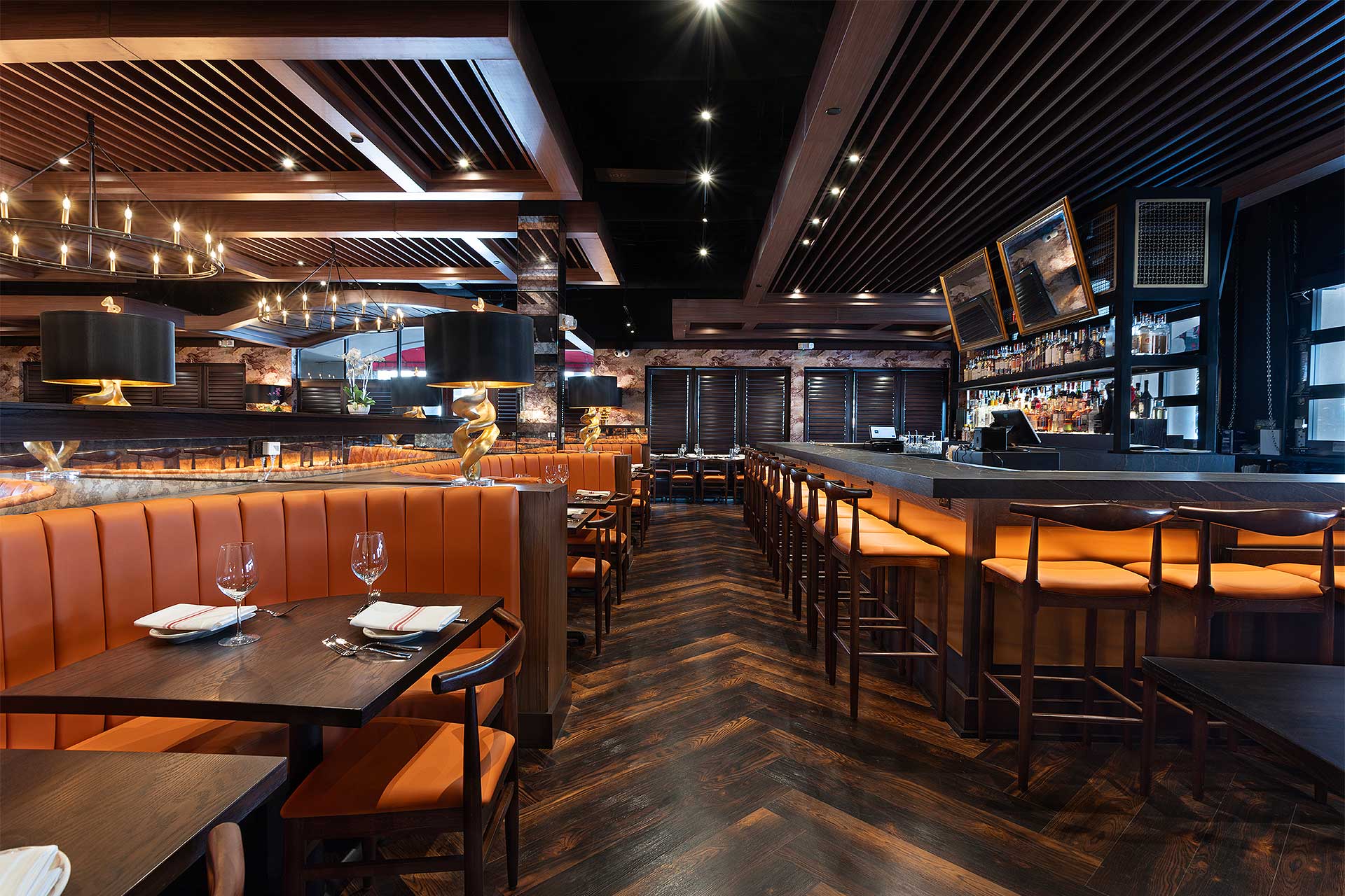 G3 recently completed an extensive 17,700 SF alteration project for Rosebud Restaurants, located on the first level of an occupied office building. Designed by Barker Nestor and Jackson-Harlen Designs, this project involved a comprehensive remodel, including the removal of existing finishes, light fixtures, and non-load bearing walls, as well as selective storefront window removal. New features include a full-service bar, back-of-house kitchen with a walk-in cooler, and non-bearing walls, along with new ceiling, mosaic tile floor, and wall finishes. Structural supports were installed for the altered storefront and suspended mechanical equipment. The mechanical system was upgraded with a new air handling unit, rooftop units, ductwork, and an exhaust hood. Electrical improvements included new lighting fixtures, wiring, and panels, while new plumbing fixtures were installed throughout the bar and kitchen. Exterior updates comprised new storefront components, including a door to the patio. Despite multiple design changes throughout construction, G3 effectively coordinated and executed this complex renovation, delivering a beautiful and functional space for Rosebud Restaurants.